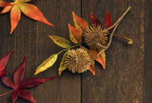 紅葉が進むと地面に落ち葉が舞い降ります。掃き掃除で終わらせるのではなく、落ち葉を使った小さな工夫で暮らしを彩ってみましょう。